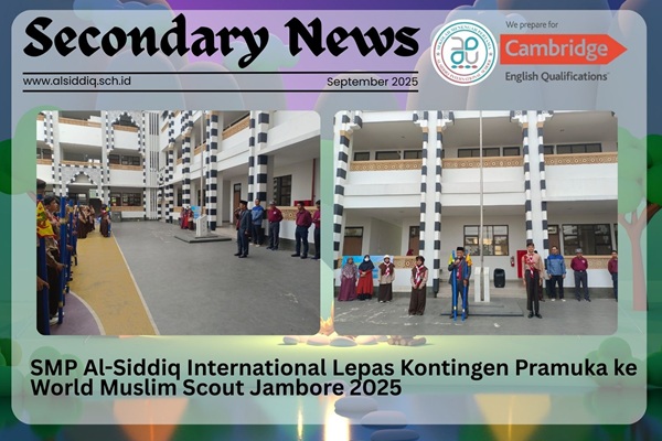 Bekasi – Tepat pukul sebelas siang, Kamis, 4 September 2025, lantai empat gedung SMP Al-Siddiq International berubah menjadi panggung khidmat. Ratusan pasang mata siswa-siswi menyaksikan sebuah momen penting: pelantikan ketua dan wakil ketua OSIS baru. Azka Fakhri Arkananta bersama rekannya, Muhammad Kautsar Mehaga Perangin-angin—keduanya dari kelas 8 putra—dilantik sebagai ketua dan wakil ketua OSIS. Prosesi pengukuhan dipimpin langsung oleh Koordinator Kesiswaan, Mr. Amal Zikrullah, M.Pd. Tak lama setelah itu, suasana ruang lantai empat mengeras dalam khidmat. Kepala sekolah, Mr. Yusuf Yudhana, S.Pd., memimpin pembacaan ikrar yang diikuti para pengurus baru. Wajah-wajah muda itu menunduk serius, seolah menyadari beratnya tanggung jawab yang kini mereka emban. Kemudian, alunan lagu “Padamu Negeri” berkumandang. Siswa-siswi menyanyi dengan penuh semangat, sementara bendera merah putih dibawa berkeliling oleh Adrian Jagat Alfatara, siswi kelas 7 putra. Momen itu menghadirkan campuran rasa: bangga, haru, sekaligus optimisme. Pelantikan ini bukan sekadar seremoni tahunan. Ia menandai peralihan kepemimpinan yang diharapkan mampu membawa warna baru bagi kegiatan siswa di SMP Al-Siddiq International. Seperti kata seorang guru yang hadir, “OSIS adalah laboratorium kepemimpinan. Di sinilah mereka belajar memimpin sekaligus melayani.”By Umair Shoddiq, S.I.Kom