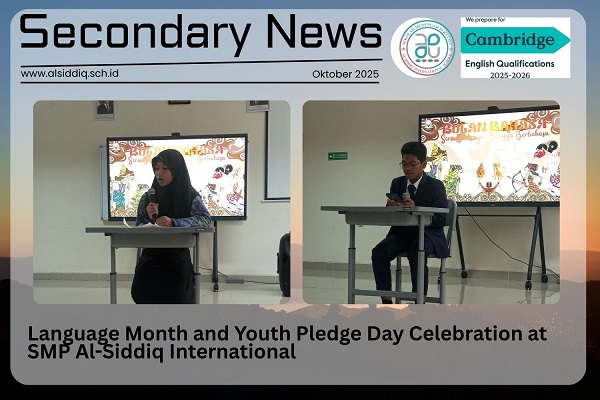 Pada Selasa, 28 Oktober 2025, SMP Al-Siddiq International merayakan Bulan Bahasa dan Hari Sumpah Pemuda dengan penuh semangat. Acara ini menampilkan tiga lomba menarik, yaitu Membaca Berita, Membaca Puisi, dan Stand-Up Comedy. Perayaan dimulai pukul 08.00 pagi, dipandu oleh dua siswa berbakat dari kelas 7, Jagat Alfatara dan Jagad Abdullah Al-Muharram, yang bertugas sebagai Master of Ceremony (MC). Acara dibuka dengan sambutan hangat dari Kepala Sekolah, Bapak Yusuf Yudhana, S.Pd., dilanjutkan dengan pembacaan ayat suci Al-Qur’an oleh Cut Hamidatul Aqila dari kelas 7 putri. Setelah itu, Ketua OSIS terpilih, Azka Fakhri Arkananta dari kelas 8 putra, menyampaikan pidato inspiratif. Lomba pertama adalah Membaca Berita, di mana para peserta membawakan segmen berita dengan gaya layaknya penyiar “Breaking News” sesungguhnya. Mereka dinilai berdasarkan intonasi, pelafalan, penggunaan bahasa, penampilan, dan bahasa tubuh. Lomba ini dinilai oleh dua guru, yaitu Bapak Fedrian Hasman, M.Sas., dan Bapak Umair Shoddiq, S.I.Kom. Setelah jeda istirahat selama 30 menit, acara dilanjutkan dengan Lomba Membaca Puisi, yang dinilai oleh Bapak Muhammad Fathul Ihsan, M.Res., dan Bapak Khalid Abdullah, Lc. Suasana menjadi haru ketika para siswa mengekspresikan perasaan dan kreativitas mereka melalui penampilan puisi yang menyentuh hati. Lomba terakhir adalah Stand-Up Comedy, yang menghadirkan tawa dan keceriaan bagi seluruh penonton. Dewan juri untuk kategori ini adalah Ibu Robiah Adawiyah, M.Pd., dan Ustadzah Diah Santikawati, S.Pd.I. Para peserta tidak hanya menyampaikan lelucon yang lucu, tetapi juga tampil dengan kostum jenaka, menjadikan pertunjukan semakin menghibur. Perayaan Bulan Bahasa dan Hari Sumpah Pemuda tahun ini berhasil menampilkan bakat, kreativitas, dan kepercayaan diri para siswa. Kegiatan ini juga mencerminkan komitmen sekolah dalam menumbuhkan kemampuan berbahasa sekaligus semangat kebangsaan di kalangan generasi muda.By Umair Shoddiq, S.I.Kom