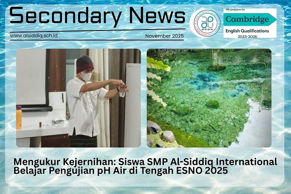Di ruang utama Pondok Pesantren Umar Bin Khottob Plus, Gunung Malang, udara pagi itu masih menyisakan dingin pegunungan. Tepat pukul 07.30, puluhan siswa SMP Al-Siddiq International sudah duduk melingkar, sebagian masih menenteng botol berisi air yang mereka ambil langsung dari Mata Air Ciburial—sumber yang mereka sebut lebih jernih daripada air mineral bermerk. Di tengah rangkaian kegiatan Educational Students Night Out (ESNO) 2025, pelajaran IPA hari itu mengambil bentuk berbeda. Alih-alih di ruang kelas, para siswa mengikuti presentasi pengujian pH air yang dibawakan oleh guru IPA, Mr. Muhammad Fathul Ihsan, M.Res. Dengan gaya penyampaian yang tenang namun tegas, Ia membuka sesi dengan satu pertanyaan sederhana, “Air yang tampak jernih, apakah selalu aman?” Pertanyaan itu langsung memicu gumaman di antara siswa—tanda rasa ingin tahu yang bekerja. Mr. Ihsan kemudian memaparkan prinsip dasar pH: ukuran tingkat keasaman atau kebasaan air yang menentukan kelayakan konsumsi. Ia memperlihatkan perbedaan warna indikator pH, menjelaskan hubungan pH terhadap kesehatan, hingga potensi kontaminasi alami di mata air pegunungan. Presentasi berlangsung ringkas, tetapi sarat ilustrasi dan contoh kehidupan sehari-hari—gaya yang membuat siswa mudah menangkap inti persoalan. Sambil memperlihatkan sampel Ciburial, ia menambahkan, “Jernih itu belum tentu bersih. Sains membantu kita melihat yang tak kasat mata.” Para siswa bergantian mengangkat sampel mereka, membandingkan kejernihan, warna, dan aroma. Momen itu menjadi semacam laboratorium kecil yang tumbuh spontan di tengah kegiatan luar ruang. Meski pengujian lengkap baru akan dilakukan ketika mereka kembali dari ESNO, antusiasme sudah tampak mencolok. Para murid akan mempraktikkan pengukuran pH secara mandiri di sekolah dengan menggunakan indikator universal atau pH meter sederhana. Kegiatan lanjutan ini dirancang untuk membuat mereka tidak hanya menonton, tetapi benar-benar mengalami proses ilmiah. Di luar ruang utama, suara riuh kegiatan ESNO terdengar samar. Namun di dalam, fokus siswa tak bergeser: sebotol air pegunungan, sebuah indikator pH, dan rasa ingin tahu yang tumbuh dari pengalaman langsung.By Umair Shoddiq, S.I.Kom