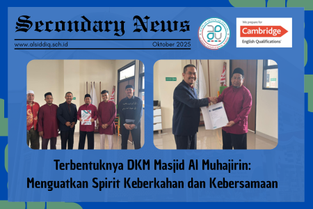 SMP Al-Siddiq International kembali mengadakan kegiatan tahunan ESNO (Educational Students Night Out) dan Field Trip 2025 pada tanggal 12–13 November 2025. Kegiatan ini menjadi momen edukatif dan pembentukan karakter yang dinanti oleh peserta didik. Pukul 06.00 WIB, seluruh peserta didik berkumpul di Bellavista untuk melakukan persiapan keberangkatan. Sebelum berangkat, peserta mendapatkan nasihat dan pesan motivasi dari Kepala Sekolah, Bapak Yusuf Yudhana, S.Pd., dilanjutkan dengan doa bersama yang dipimpin oleh Ketua Panitia sekaligus Guru Qur’an, Ust. Ahmad Toha, M.Ag. Tepat pukul 07.00 WIB, dua bus—terpisah antara Ikhwan dan Akhwat—bergerak menuju destinasi pertama, yaitu Museum PETA, Bogor Tengah, Kota Bogor. Di museum ini, para peserta didik mempelajari sejarah PETA (Pembela Tanah Air), pasukan bentukan Jepang pada masa pendudukan 1942–1945 yang menjadi cikal bakal TNI. Mereka juga mengenal lebih dekat tokoh-tokoh nasional seperti Jenderal Soedirman, Seoprijadi, Jenderal Ahmad Yani, serta mantan Presiden RI ke-2, Soeharto. Selain sejarah, siswa-siswi dibuat takjub dengan koleksi senjata Perang Dunia II yang dahulu digunakan para pejuang kemerdekaan. Perjalanan dilanjutkan menuju lokasi yang berbeda suasana, yaitu Pondok Pesantren Umar Bin Khottob Plus, yang terletak di kaki Gunung Salak, Desa Gunung Malang, Tenjolaya, Kabupaten Bogor. Setibanya di lokasi, Mr. Umair Shoddiq, S.I.Kom, selaku Seksi Acara, memberikan pengarahan mengenai tata tertib, adab, kebersihan, serta keamanan barang pribadi. Selama dua hari satu malam, peserta didik mengikuti rangkaian kegiatan pembinaan karakter, meliputi kepemimpinan, kerjasama tim, empati sosial, kepedulian lingkungan, hingga menumbuhkan semangat menuntut ilmu. Keasrian alam kaki Gunung Salak menambah kekhidmatan kegiatan, dengan hadirnya kawanan rusa peliharaan dan monyet liar yang tampak bermain di pepohonan setiap pagi. Peserta juga diajak mengunjungi Mata Air Ciburial, sumber air jernih yang terkenal sangat murni hingga dapat diminum langsung. Pada malam hari, setelah sholat Isya, Mr. Muhammad Fathul Ihsan, M.Res., Guru IPA, mempresentasikan cara menguji pH air. Dilanjutkan dengan kegiatan Jurit Malam, di mana peserta dalam kelompok melakukan penelusuran area pesantren menuju empat pos yang dijaga guru serta kakak Pramuka. Setiap pos menyediakan tantangan dan permainan edukatif yang berbeda. Setelah selesai, peserta kembali ke pondok dan menikmati bakso hangat buatan Ustadzah Diah Santikawati, S.Pd.I., dan Ustadzah Mila Febri Wahyuni, Lc. Menjelang larut malam, peserta dipersilakan beristirahat. Keesokan harinya, kegiatan dimulai dengan senam pagi dipimpin Ustadz Abdul Aziz, S.Pd. Setelah itu peserta menikmati hidangan siang berupa ikan nila bakar, tumis jamur, dan sambal matah, kemudian melaksanakan sholat Dzuhur berjamaah. Acara resmi ditutup dengan lafaz hamdallah yang dipimpin oleh Mr. Yusuf, disertai instruksi agar seluruh peserta didik memungut sampah di sekitar lokasi, meninggalkan tempat dalam keadaan bersih.Pukul 13.00 WIB, dua bus yang membawa rombongan kembali ke Kota Bekasi dengan aman dan selamat. Kegiatan ESNO dan Field Trip 2025 ini menjadi pengalaman berharga bagi peserta didik, tidak hanya sebagai bentuk pembelajaran luar kelas, tetapi juga sebagai wahana pembentukan karakter Islami, cinta tanah air, dan kepedulian lingkungan.By Umair Shoddiq, S.I.Kom