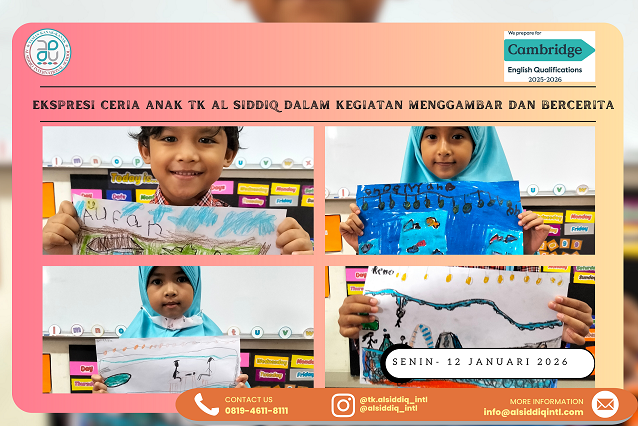 Kegiatan menggambar dan bercerita tentang liburan dilaksanakan bersama anak-anak TK Al Siddiq pada hari Senin hingga Selasa, tanggal 12–13 Januari 2025. Kegiatan ini berlangsung di dalam kelas dengan suasana yang menyenangkan dan penuh antusias. Anak-anak terlihat bersemangat karena mereka diberi kesempatan untuk mengekspresikan pengalaman liburan yang telah mereka lalui.