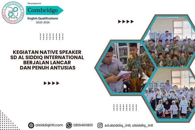 SD Al Siddiq International kembali melaksanakan kegiatan Native Speaker pada hari Rabu, 8 April 2026. Kegiatan ini merupakan program rutin yang diadakan setiap satu bulan sekali sebagai upaya untuk meningkatkan kemampuan bahasa Inggris siswa melalui interaksi langsung dengan penutur asli.