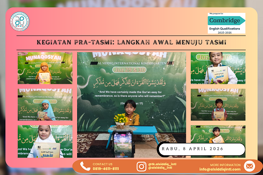 Kegiatan Pra-Tasmi merupakan salah satu rangkaian penting dalam program pembelajaran Al-Qur’an di TK Al Siddiq International. Kegiatan ini dirancang sebagai tahap persiapan sebelum anak mengikuti tasmi dan munaqosyah yang sesungguhnya. Melalui Pra-Tasmi, guru dapat melihat kesiapan hafalan anak sekaligus memberikan pengalaman awal dalam suasana penilaian yang lebih terarah.