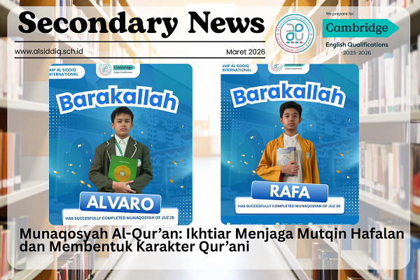 Al Siddiq International School kembali menyelenggarakan agenda penting dalam pembinaan karakter Qur’ani siswa melalui kegiatan Munaqosyah Al-Qur’an yang dilaksanakan pada Senin–Jumat, 9–13 Februari 2026. Kegiatan ini menjadi salah satu program unggulan sekolah dalam memastikan kualitas hafalan Al-Qur’an para santri tetap terjaga secara optimal.