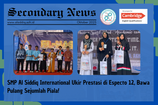 SMP Al Siddiq International kembali menunjukkan prestasinya dalam ajang bergengsi Especto 12 (El Hassan Sport and Academic Competition) yang digelar pada bulan Oktober 2025. Dalam kompetisi yang mempertemukan pelajar berprestasi dari berbagai sekolah ini, SMP Al Siddiq International mengirimkan 17 peserta untuk berlaga di berbagai cabang lomba, meliputi story telling, pidato, puisi, Musabaqah Hifdzil Quran (MHQ), poster presentasi, dan badminton.