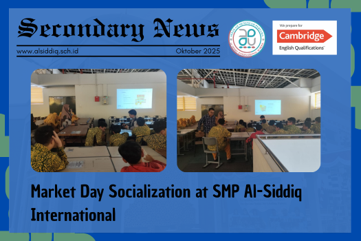 Pada hari Rabu, 23 Oktober 2025 pukul 14.10 WIB, SMP Al-Siddiq International mengadakan kegiatan sosialisasi untuk acara Market Day yang akan datang. Kegiatan ini dipandu oleh Ustadzah Mila Febri Wahyuni, Lc., yang menjelaskan tujuan, peraturan, serta persiapan menjelang pelaksanaan acara tersebut.